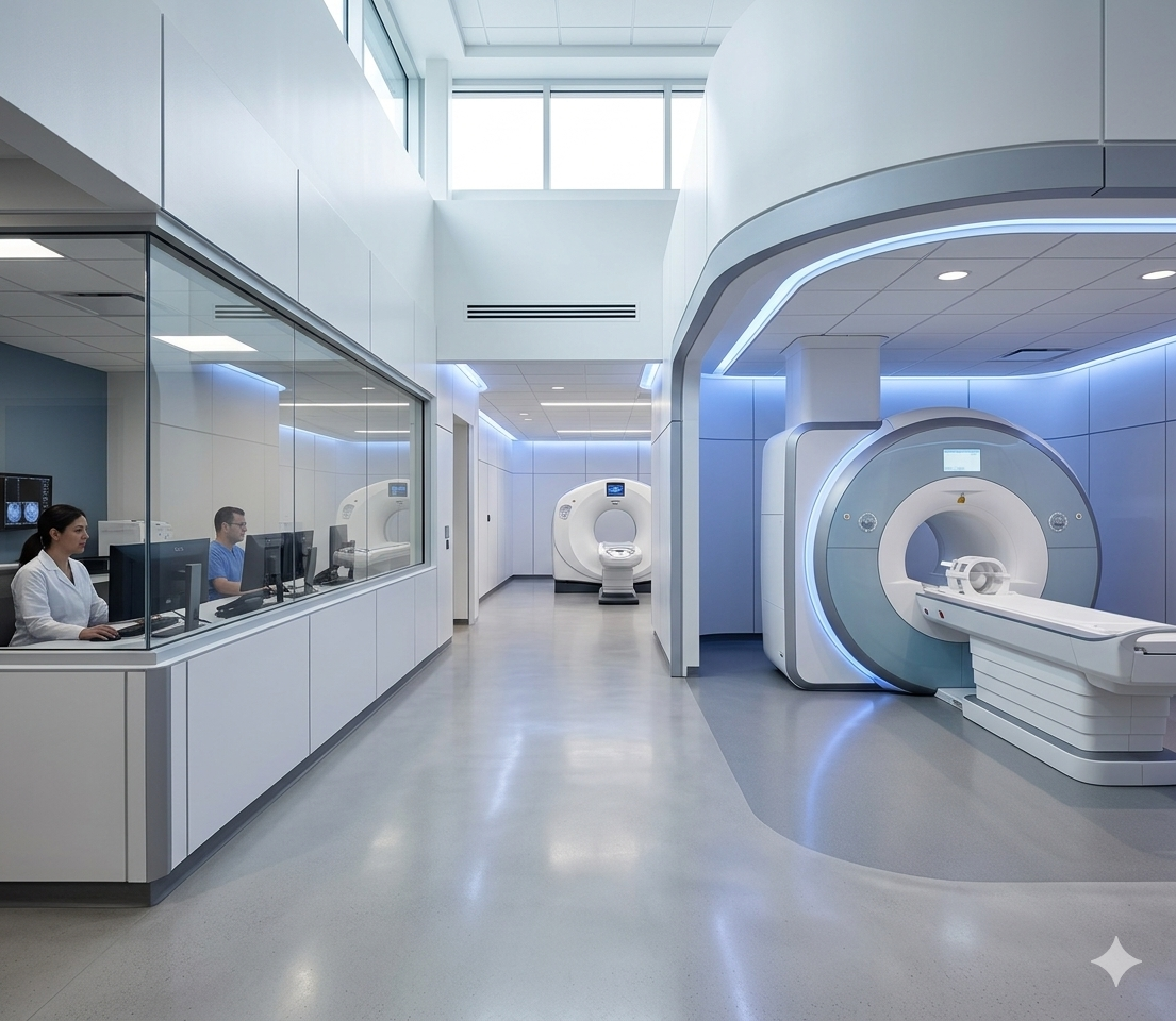 Comprehensive diagnostic imaging facility with MRI, CT, and X-ray departments. Specialized shielding, equipment installation, and workspace design for maximum efficiency and patient comfort.