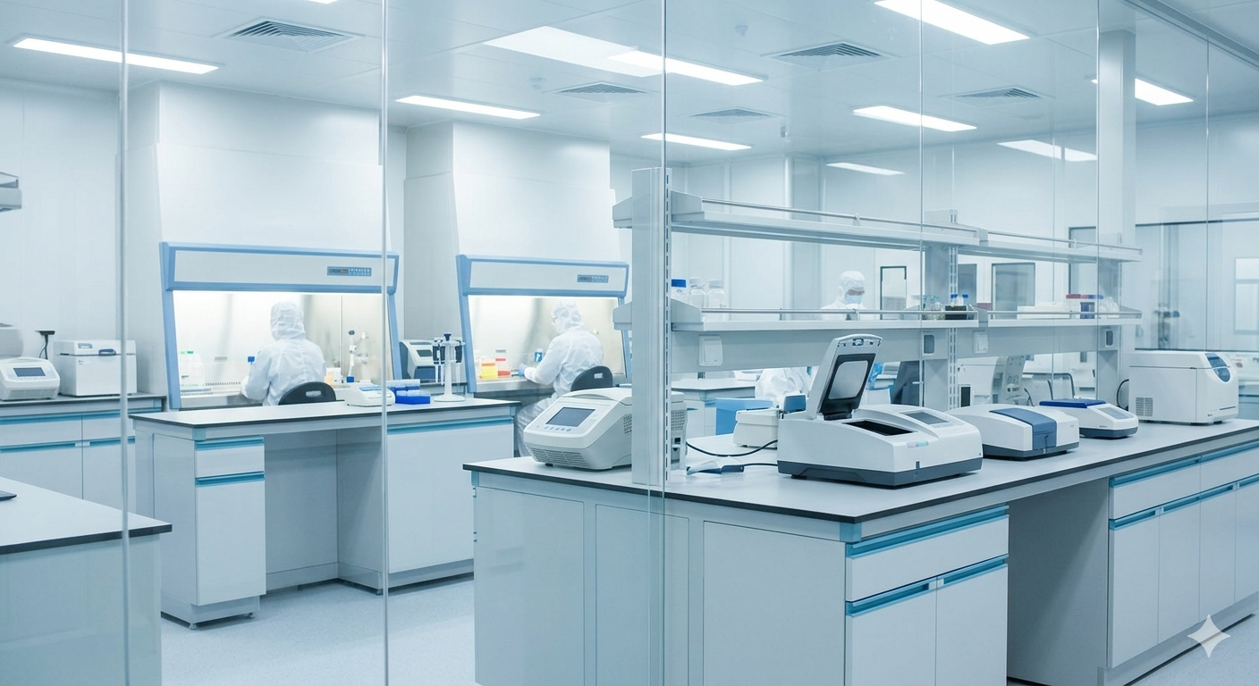 State-of-the-art research facility with specialized laboratory spaces, biosafety protocols, and collaborative research areas. Integrated advanced HVAC and environmental control systems for sensitive research environments.