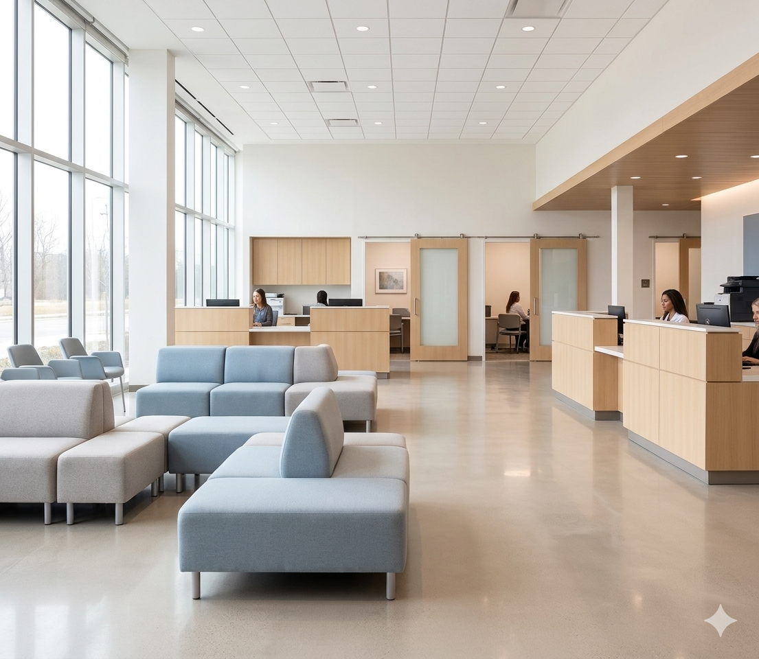 Multi-specialty outpatient facility designed to serve 50,000+ annual patients. Features integrated electronic health records systems, patient-centered design, and flexible spaces for multiple clinical specialties.